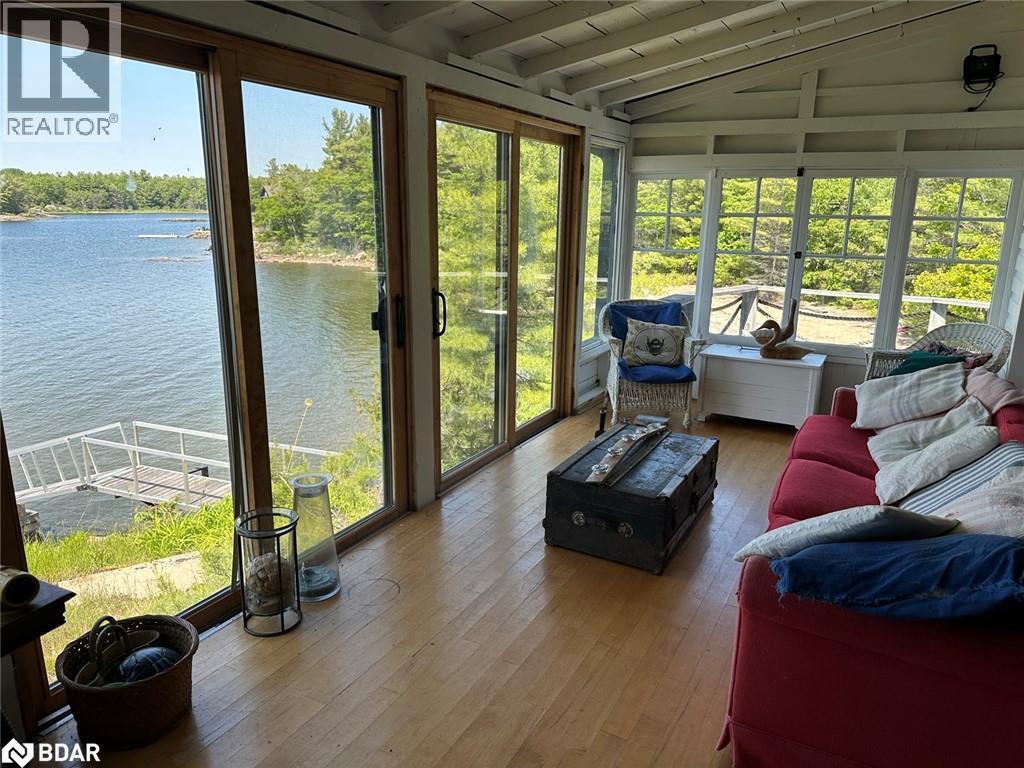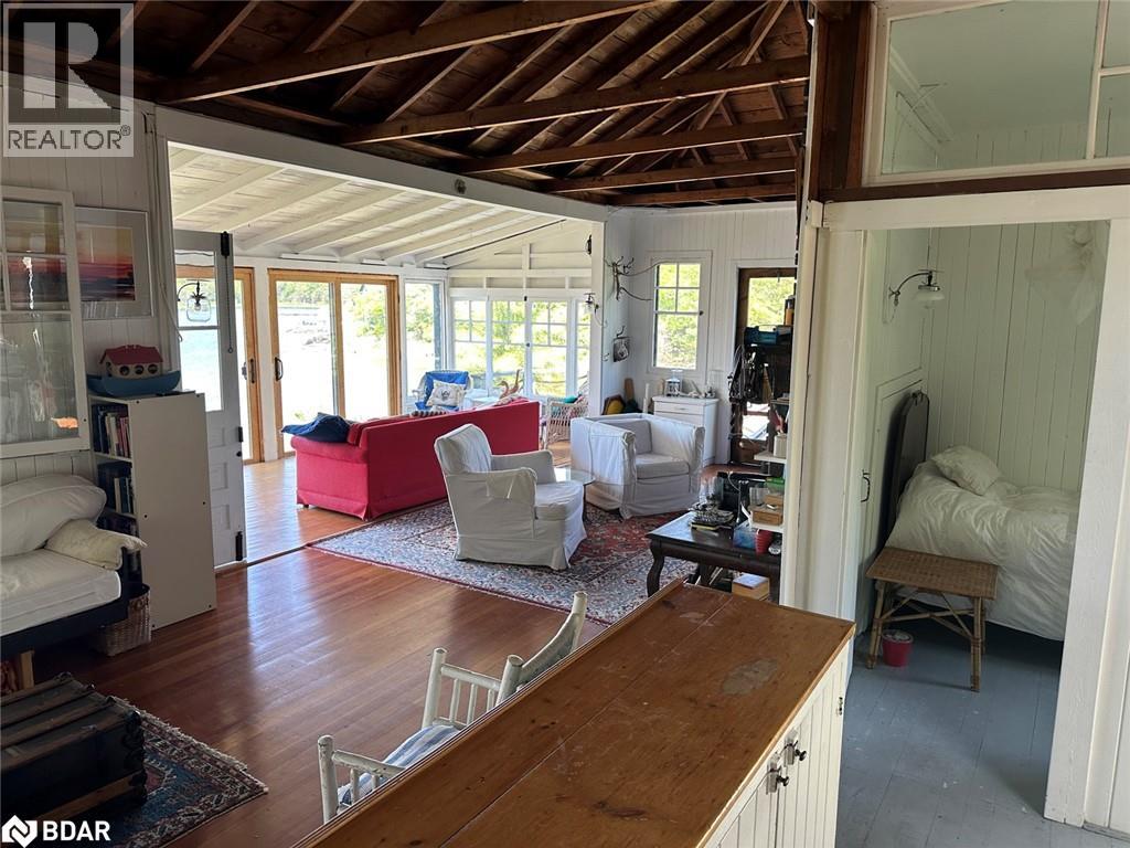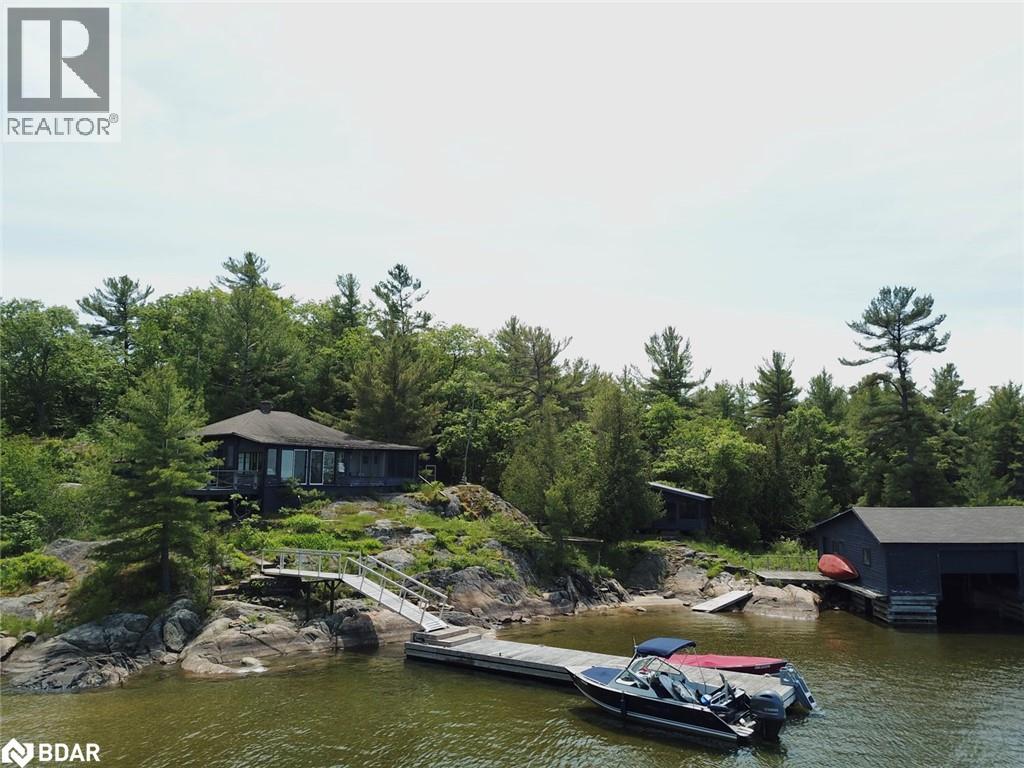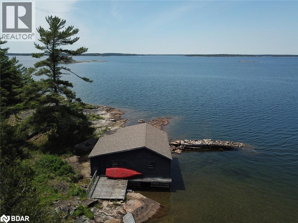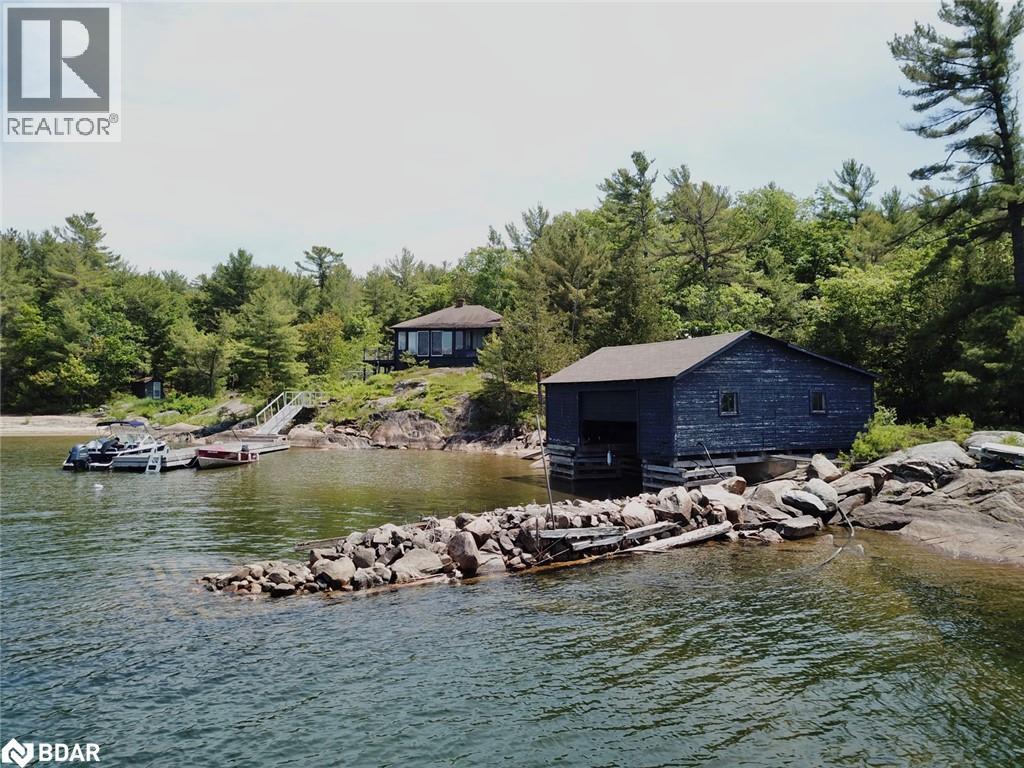 Classic 1917 built Cottage with two cabins and a Bunkie, a boathouse, a beautiful rock point, a rare sandy beach, on 12.35 acres, with a laneway, driveway to local roads allowing you to drive into your place or to use local marinas, as most others do for this kind of Cottage. Private and quiet area, no boat traffic, amazing northwest & west sunsets and views, relax and enjoy the sound of waves lapping on the shore. The main Cottage has two bedrooms, a large dining room, screen porch, deck, a fireplace, and is so nicely oriented towards the water. The two cabins with metal roofs, one with a screen porch, are nicely situated on the way to the large boathouse with a workshop area. The lot goes beyond that to the beautiful rock outcropping to the west. There is a small Bunkie near the large beach, adding up to sleeping for 10+ people, with most bedrooms having a sink. The drive-to feature allows reduced marina and contractor costs, boat storage, loads of parking, and independence for people to come and go. Hydro is nearby at both neighbors left and right, or you could go with the solar option. There is a septic in place, and a steel pipe quality 45 foot dock. The cottage is ideally located in Pointe au Barils Georgian Bay freshwater granite & pines island community, a short boat ride to the historic Ojibway Club and to the marinas in the station where there is a hardware store, nursing station with ambulance, groceries, LCBO, garbage transfer station and other amenities. (id:24696)