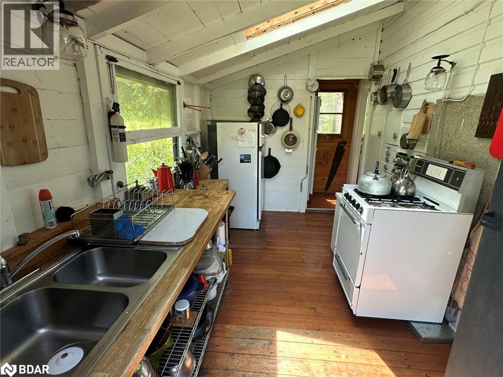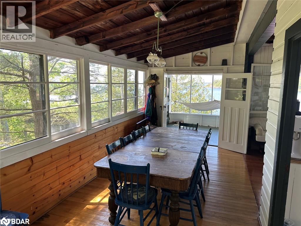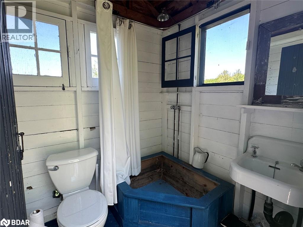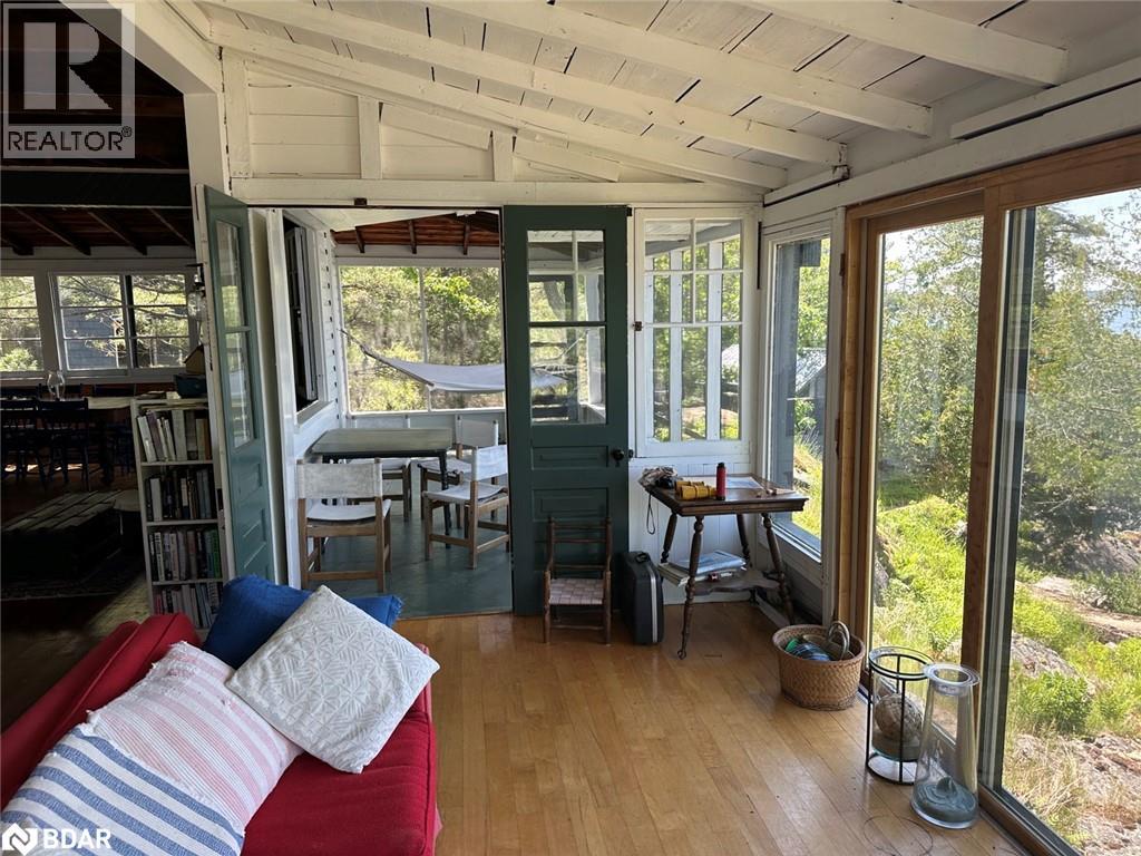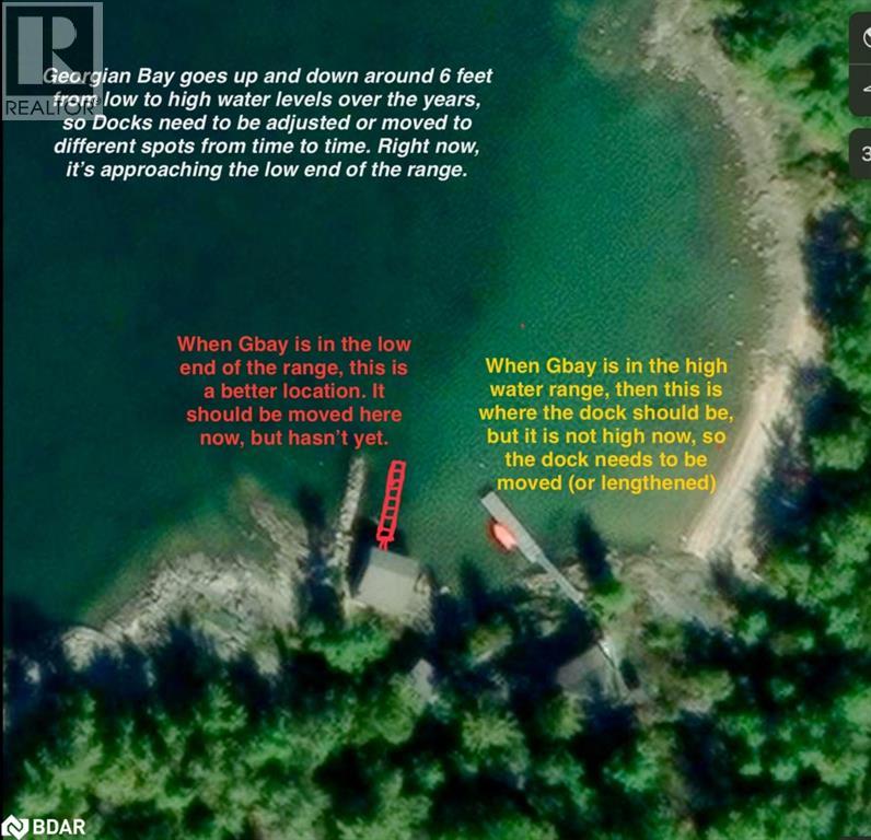 Classic 1917 built Cottage with two cabins and a Bunkie, a boathouse, a beautiful rock point, a rare sandy beach, on 12.35 acres, with a laneway, driveway to local roads allowing you to drive into your place or to use local marinas, as most others do for this kind of Cottage. Private and quiet area, no boat traffic, amazing northwest & west sunsets and views, relax and enjoy the sound of waves lapping on the shore. The main Cottage has two bedrooms, a large dining room, screen porch, deck, a fireplace, and is so nicely oriented towards the water. The two cabins with metal roofs, one with a screen porch, are nicely situated on the way to the large boathouse with a workshop area. The lot goes beyond that to the beautiful rock outcropping to the west. There is a small Bunkie near the large beach, adding up to sleeping for 10+ people, with most bedrooms having a sink. The drive-to feature allows reduced marina and contractor costs, boat storage, loads of parking, and independence for people to come and go. Hydro is nearby at both neighbors left and right, or you could go with the solar option. There is a septic in place, and a steel pipe quality 45 foot dock. The cottage is ideally located in Pointe au Barils Georgian Bay freshwater granite & pines island community, a short boat ride to the historic Ojibway Club and to the marinas in the station where there is a hardware store, nursing station with ambulance, groceries, LCBO, garbage transfer station and other amenities. (id:24696)